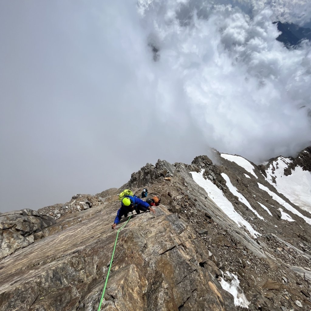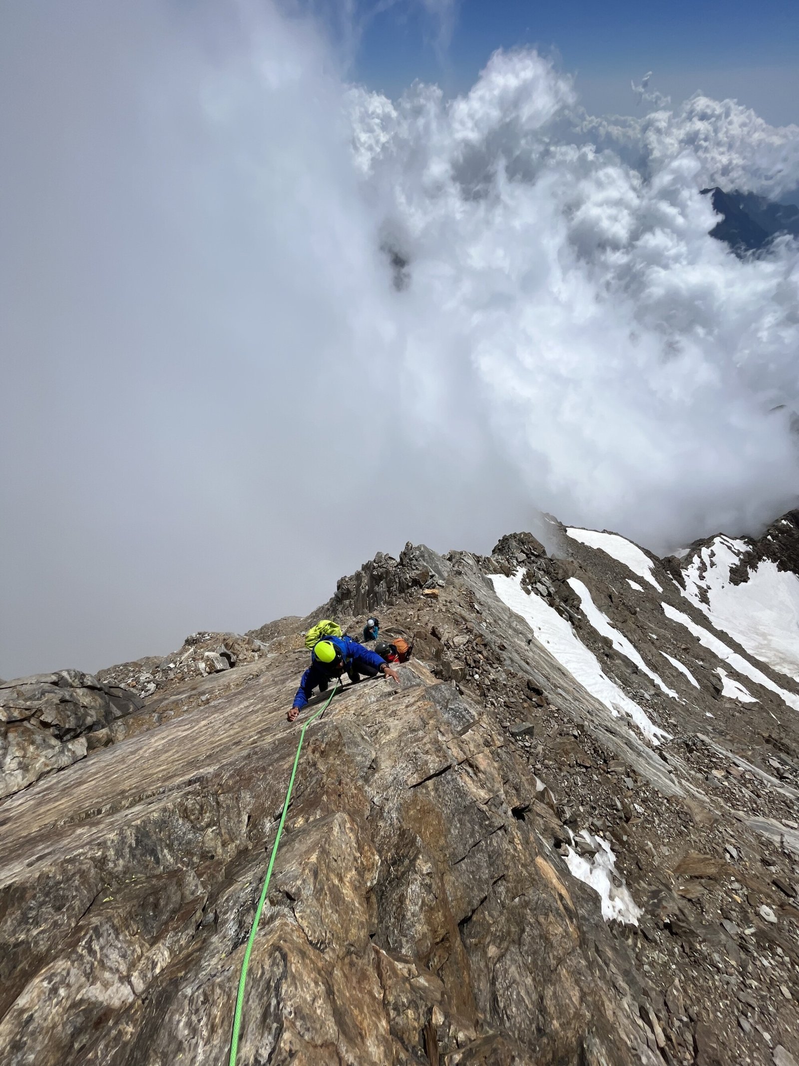 Per le cordate più veloci si potrà proseguire ancora per cresta molto esposta per concatenare anche la Piramide Vincent!