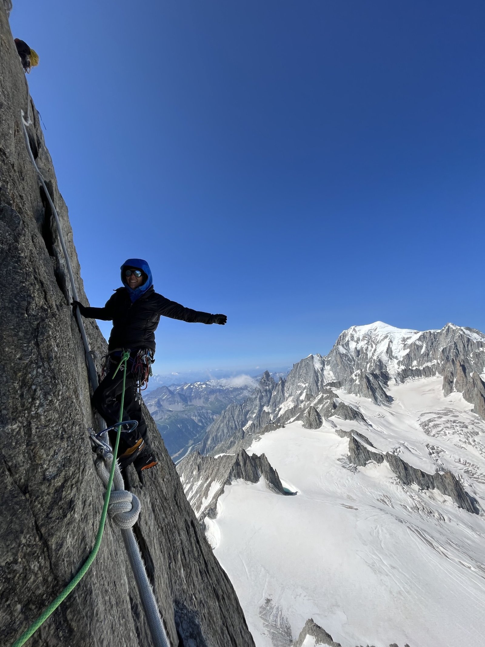 Una grande salita ai 4014 m del Dente del Gigante, una delle cime che sovrastano il paese di Courmayeur, in un ambiente grandioso davanti al Monte Bianco!