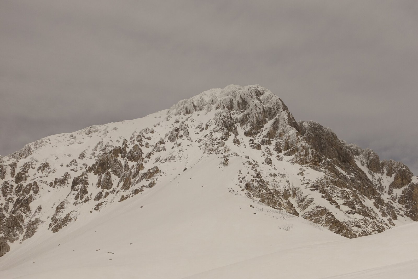 - Monte Camicia, sia che lo sali di qua che lo sali di là, è una macchia di neve compatta inclinata al punto giusto per gasare qualche curva in velocità!