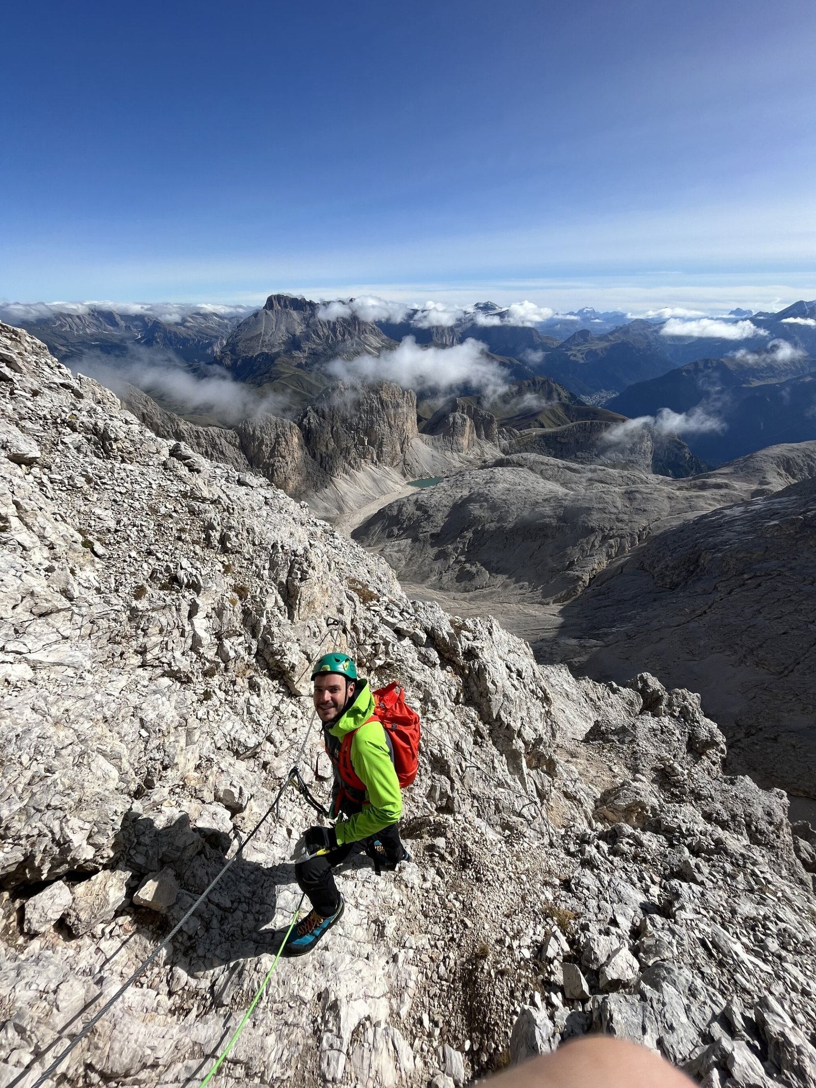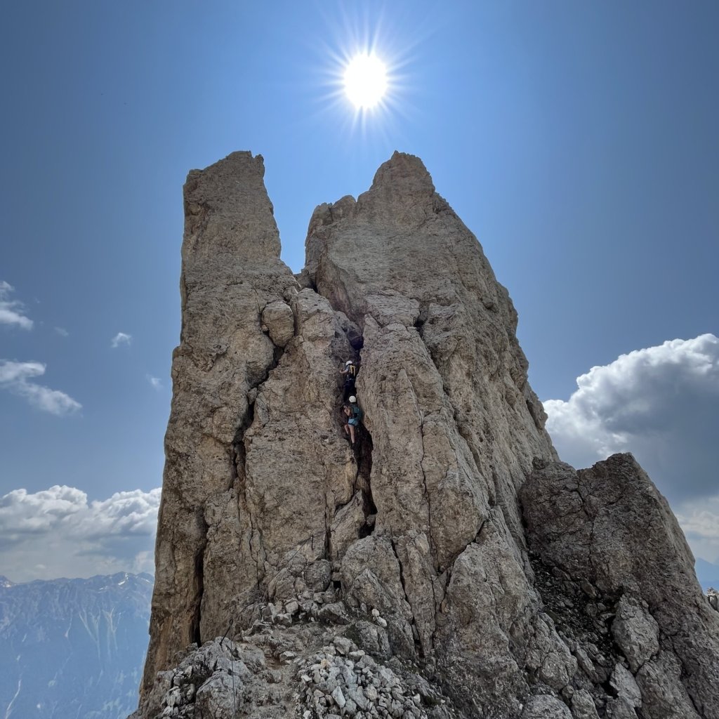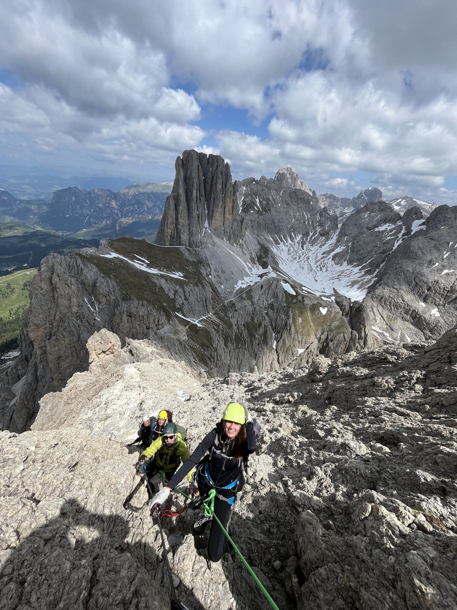 Percorreremo la ferrata Roda di Vael e le Creste del Masarè, la via ferrata Santner e infine quella che raggiunge la vetta più alta del gruppo: la via ferrata al Catinaccio d’Antermoia! Passeremo sotto le iconiche Torri del Vajolet, attraverseremo la meravigliosa omonima valle e cammineremo vicino al Lago di Antermoia dopo averlo visto dalla cima!